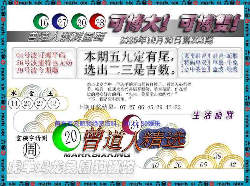 303期:男女二肖【男肖+兔鸡】开:兔15准