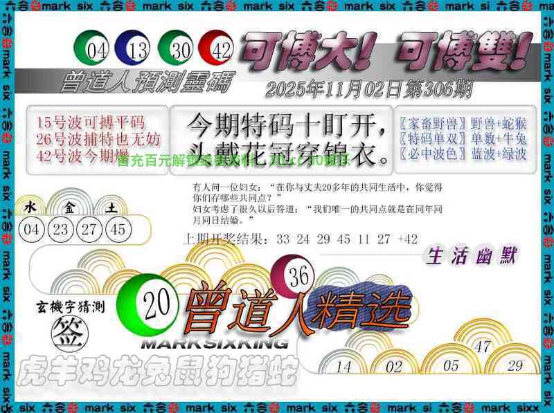 306期:男女二肖【女肖+狗虎】开:牛17错